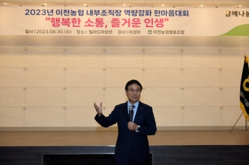 [주정임 기자]=이천농협(조합장 이덕배)은 내부조직장 역량강화를 위한 한마음 대회를 임직원, 영농회장, 부녀회장 160여명 참석한 가운데 개최하고, 농협 전이용 및 사업추진을 위한 결속을 강화하였다.